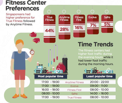 - 44% of people analysed in Singapore prefer True Fitness, with Anytime Fitness coming second at 28%